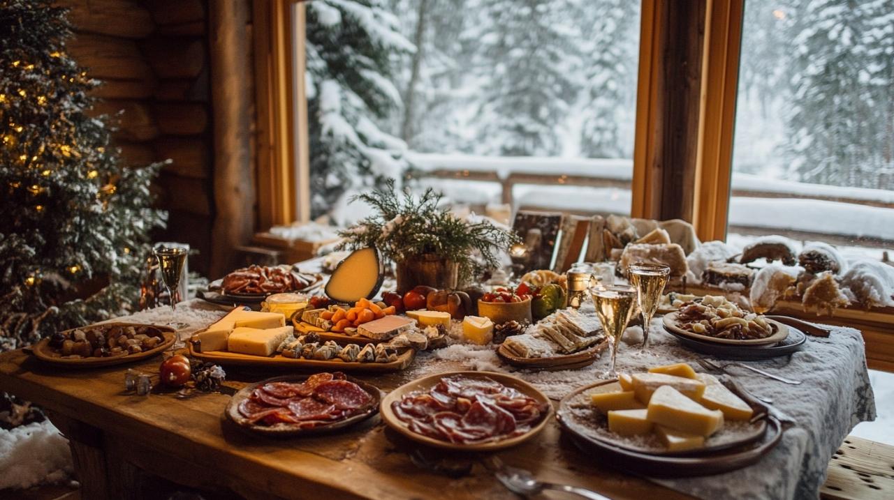 Créez une atmosphère alpine avec quelques branches de sapin, des pommes de pin et des bougies aux senteurs boisées. Des guirlandes lumineuses disposées sur la table ou autour de la pièce ajouteront une touche féerique à votre soirée. Des serviettes en tissu aux motifs hivernaux et quelques éléments décoratifs en bois compléteront cette ambiance chaleureuse et authentique.